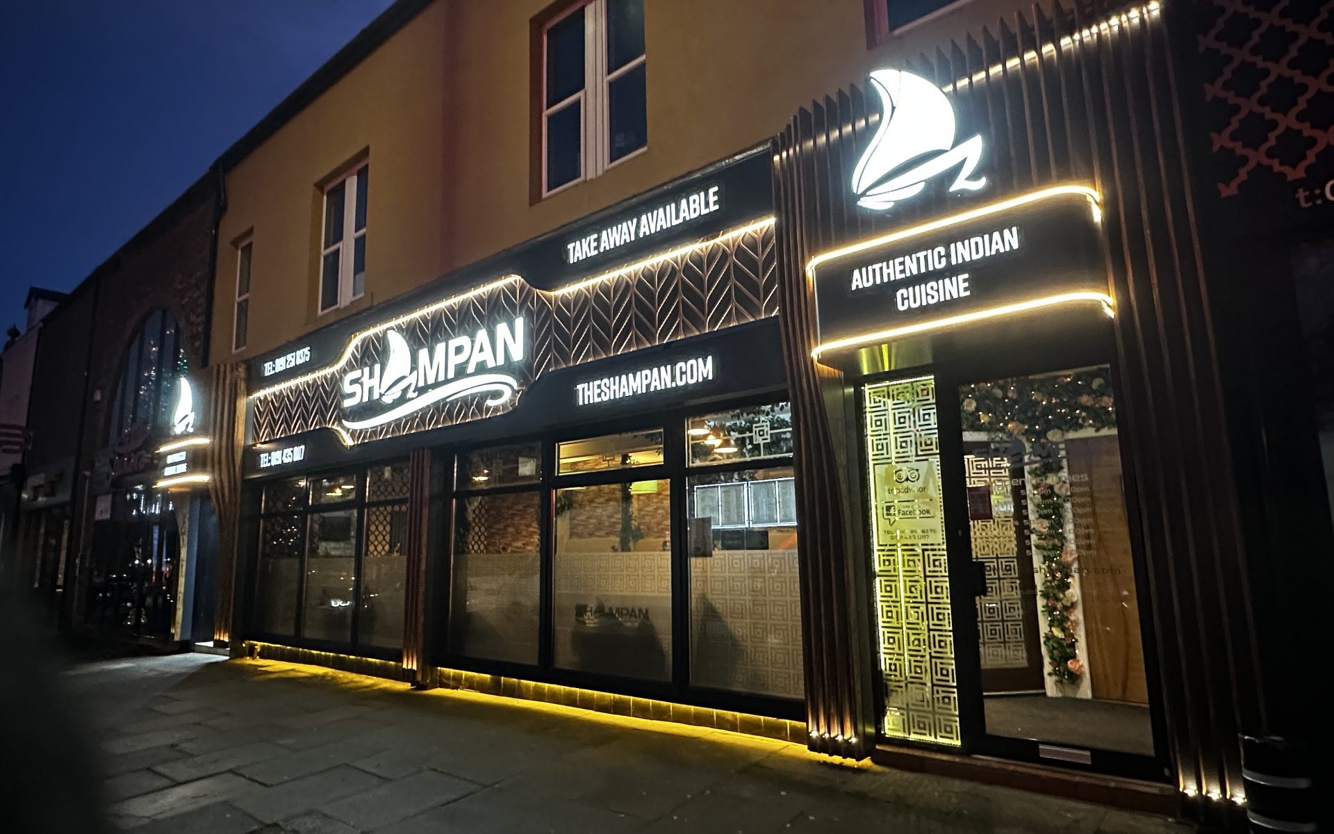 Our team was approached by the owners of the newly revitalized Indian restaurant, Shampan. With the recent addition of a stylish cocktail lounge, they sought to elevate their branding and enhance the standard of the signage and building facade to reflect the exquisite quality of their Indian cuisine and exceptional cocktails.